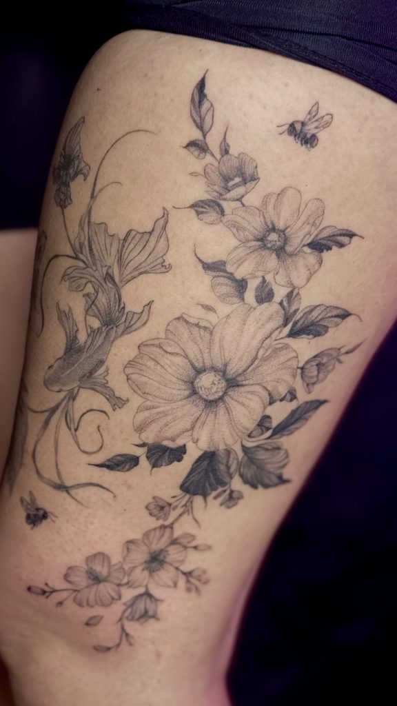 Hey ich bin Diana, 37 Jahre alt und lebe seit längerer Zeit mit meiner Familie in Leipzig. Ich habe langjährige Erfahrung in der Arbeit mit Menschen mit einer tiefen Leidenschaft für kreative Arbeiten. Nach über zehn Jahren im sozialen Bereich entschied ich mich, meine künstlerische Ader im Tätowieren zu entfalten. Dabei liegt mein Fokus darauf, Kunden ein vertrauensvolles Umfeld zu schaffen, in dem persönliche Geschichten auf der Haut übersetzt werden.